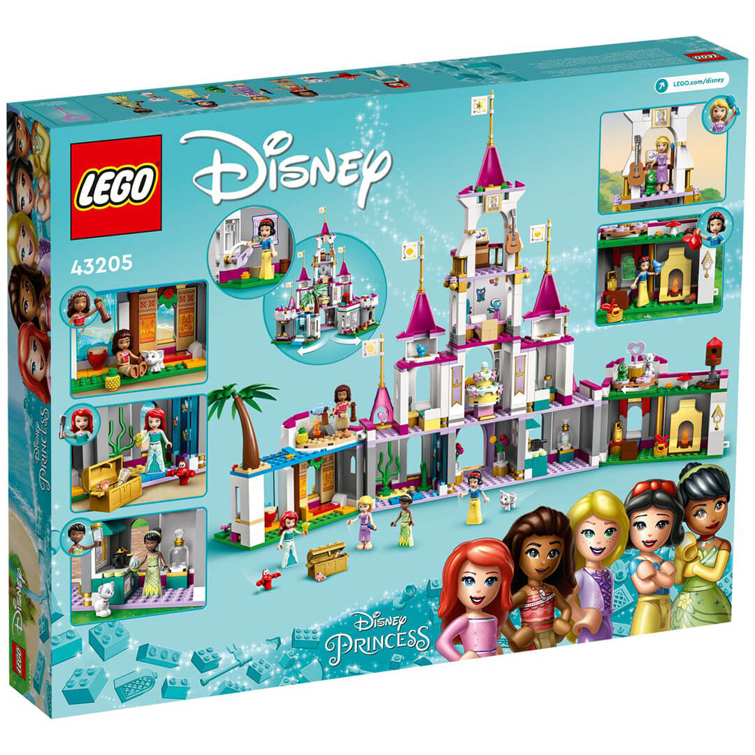 Zestaw 43205 to wspaniały model zamku do zbudowania. Podaruj dzieciom godziny radości spędzone na zabawie w fantastycznym świecie Disneya. Zbuduj wspaniały pałac, w którym każda z pięciu księżniczek posiada swój pokój z licznymi akcesoriami. W zestawie znajdziemy figurki Arielki, Roszpunki, Tiany, Vaiany i Królewny Śnieżki. Zamek posiada liczne zakamarki, wiele ciekawych funkcji i akcesoriów, które sprawią że zabawa będzie niezapomnianą przygodą.
