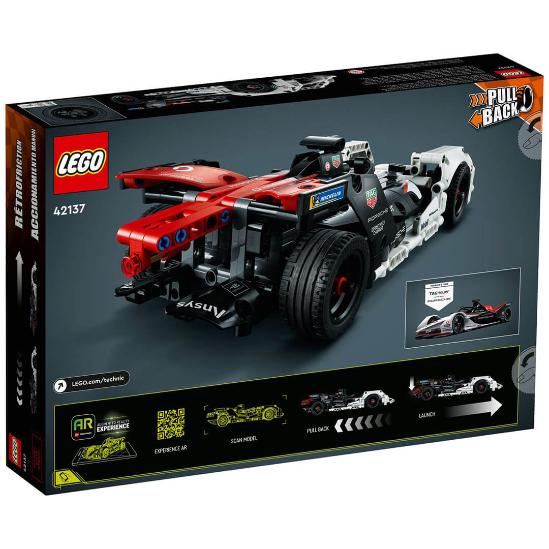 LEGO Technic 42137 to zestaw dla fanów motoryzacji oraz konstruowania z klocków. Zestaw zawiera ponad 420 klocków, z których można zbudować model elektrycznego samochodu wyścigowego Porsche 99X Electric z serii Formula E. Skonstruuj ten superszybki samochód i pomknij na tor wyścigowy. Model posiada dwa silniki typu pull-back, dzięki którym można wprowadzać auto w ruch. Zestaw ten przypadnie do gustu młodym fanom motoryzacji i wyścigów.